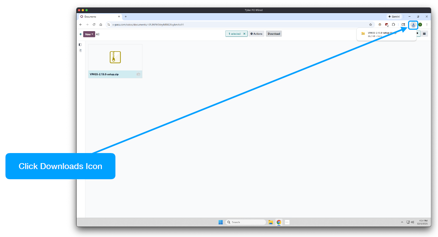 In order to access the V-Pass desktop application installer, you will need to work with your V-Pass customer success manager to obtain login credentials as a v-pass.com portal user. Once you are logged into v-pass.com as a portal user, please follow the steps below to download and install the V-Pass desktop application.